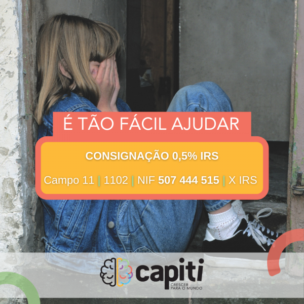 Queremos continuar a chegar a mais crianças e queremos continuar a apoiar as nossas famílias, para isso, precisamos da sua ajuda.Ao doar 0,5% do seu IRS está a apoiar a saúde mental infantil. Para si não tem custos e para a CAPITI faz toda a diferença. Obrigado!